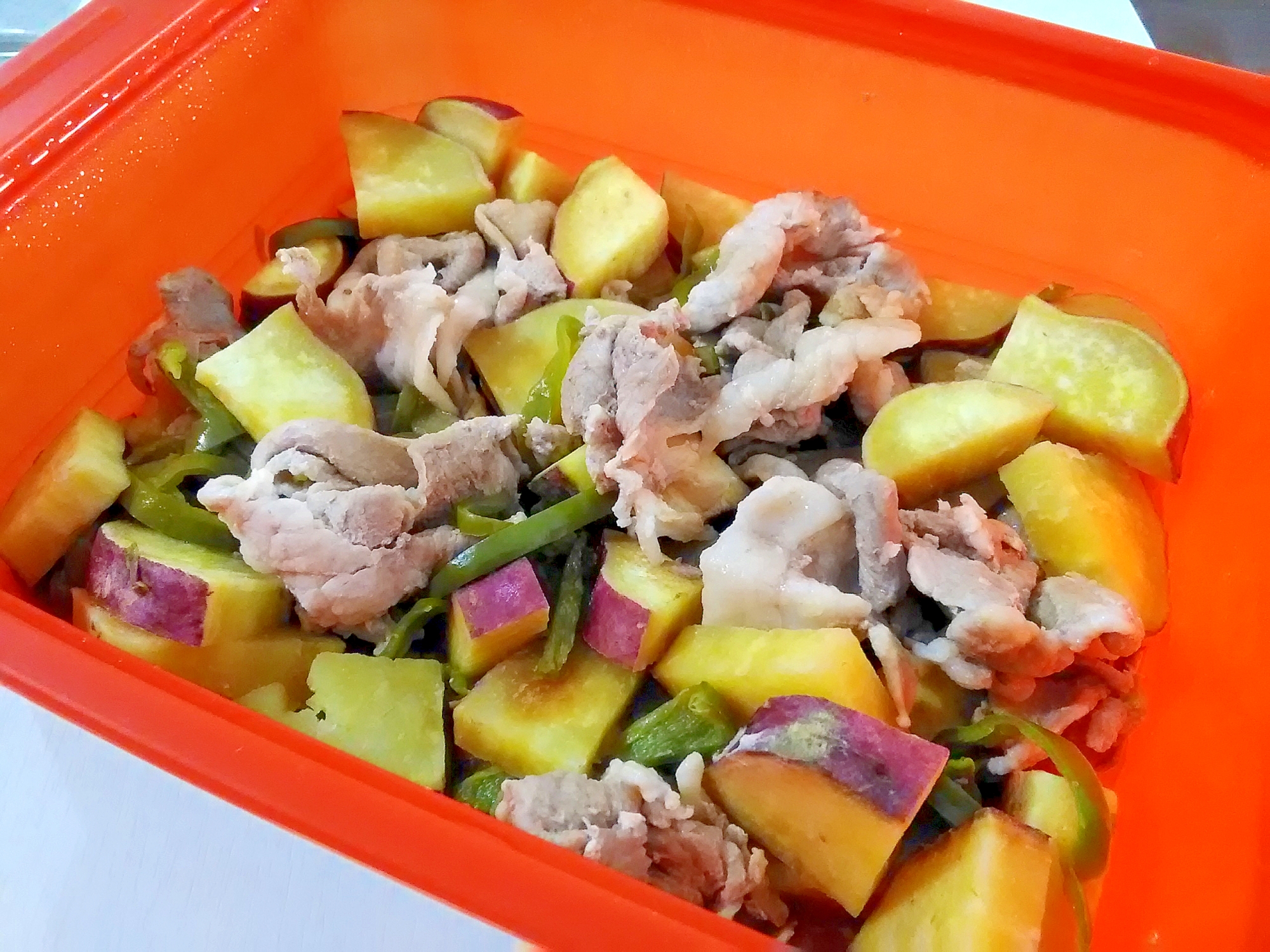 電子レンジで 豚肉とさつまいものバターしょうゆ蒸し レシピ 作り方 By うーころちゃん 楽天レシピ